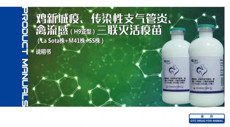[Composition] Each dosage(0.5ml as one dosage)contains inactivated NDV (Newcastle disease strain M41,strain La Sota) ≥108.5EID50 ,IBV(infectious bronchitis virus,strain M41) ≥106.5 EID50 and AIV(subtype H9 avian influenza virus,strain SS) ≥107.5 EID50.