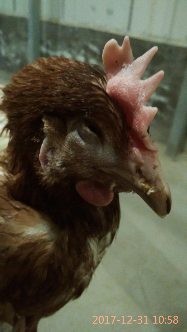 IC在雞育成階段和產蛋階段高發,各個品種雞對Apg都易感,尤其是8-16周齡階段育成及產蛋雞群。老齡雞感染較為嚴重。發病初期主要表現為采食量和飲水量輕微下降,打噴嚏,流出的鼻液先為清亮色,三到四天后轉為白色膿性鼻涕,并伴著流淚,眼腫大,嚴重時整個頭部腫大,眼睛內陷,部分蛋雞眼睛失明。IC的一個特征是潛伏期短,接種培養物或分泌物后24-48h內即可發病。